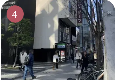 そのまままっすぐ進み、おにぎり屋さんの角を右折し、μX MEIEKIへ入り4階へ。