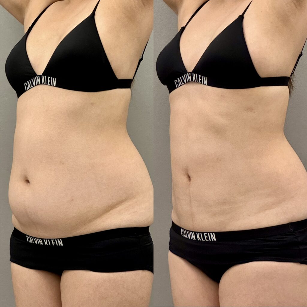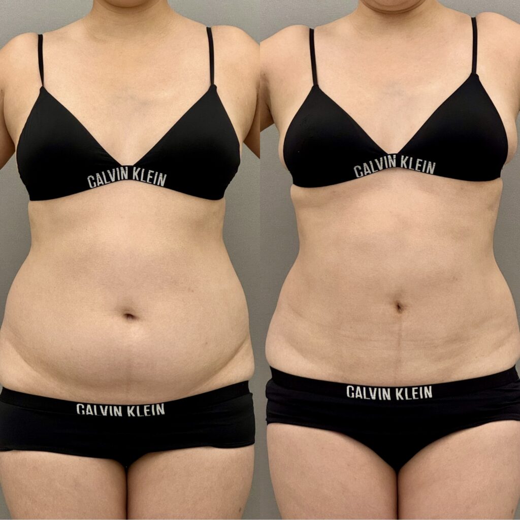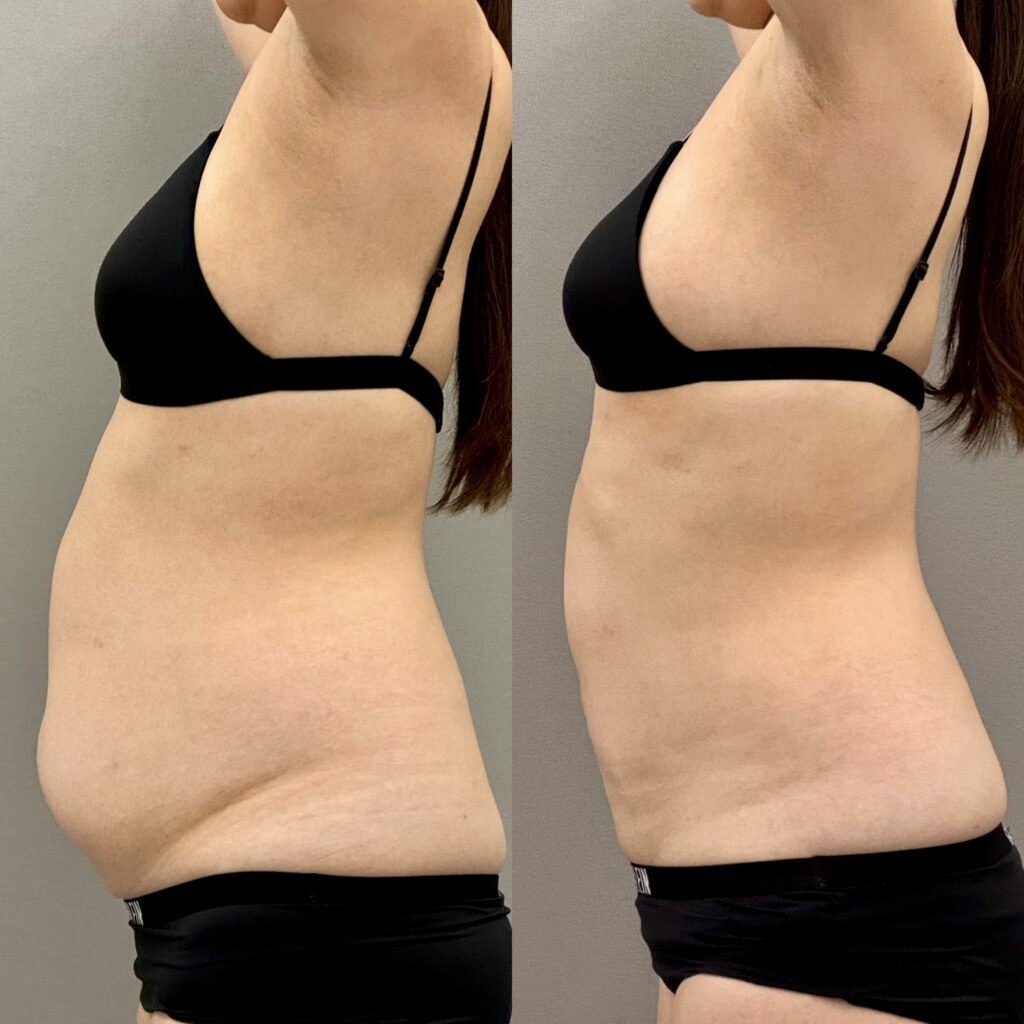 胸下、全腹部の脂肪吸引症例です。お腹が気になっているということで胸下、全腹部を吸引しました。これだけ変化があると皮膚が弛むリスクはありますがベイザーをしっかり使ってしっかり引き締まってスッキリして細くなりましたね。これくらいであればエンブレイスなど中のタイトニングは不要です。ベイザーを使うのではなく使いこなすが重要なポイントです。お腹の吸引は技術と経験が必要なのでぜひ当院にお任せください。