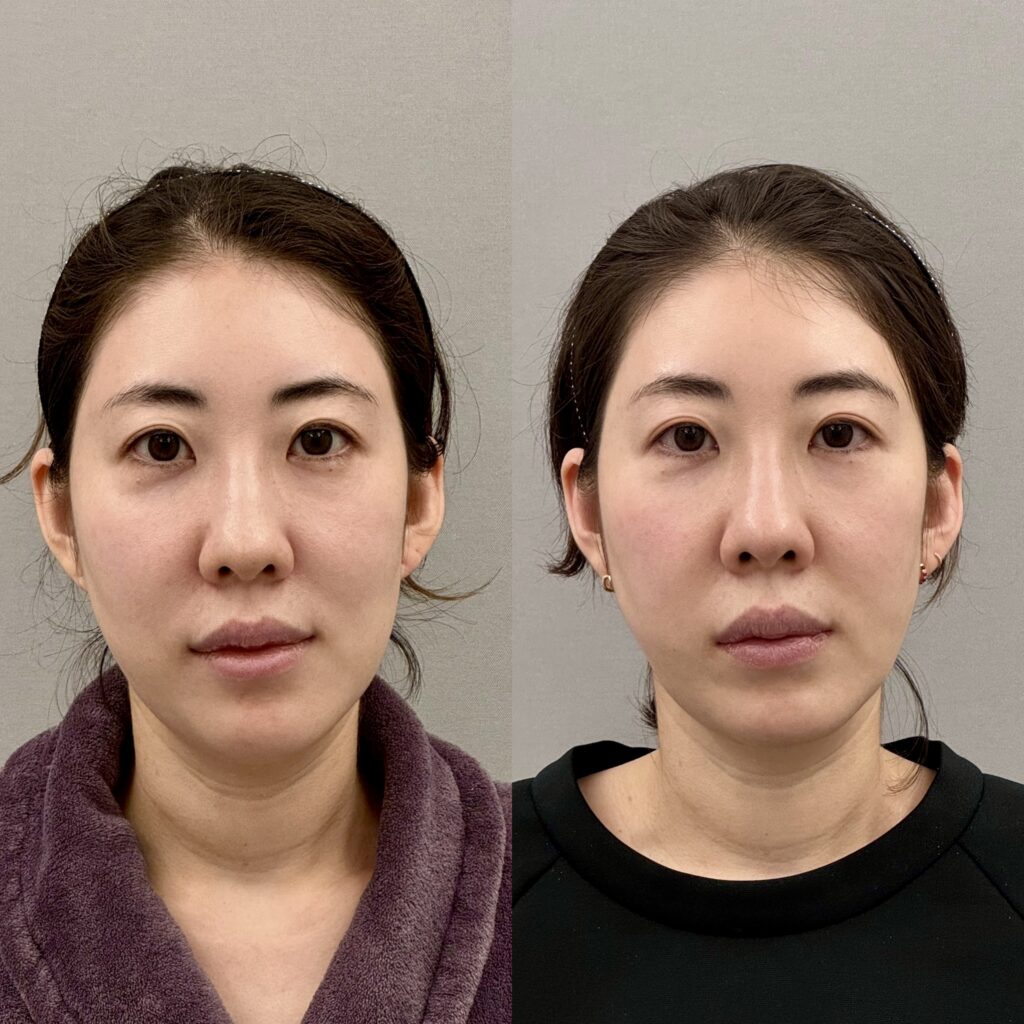 頬顎下VASER脂肪吸引の症例です。頬は少なめでしたが調整する程度として顎下はしっかりと吸引を行なっています。3ヶ月経過して拘縮もほとんどなくなりスッキリしてきました。6ヶ月後の完成が楽しみです。