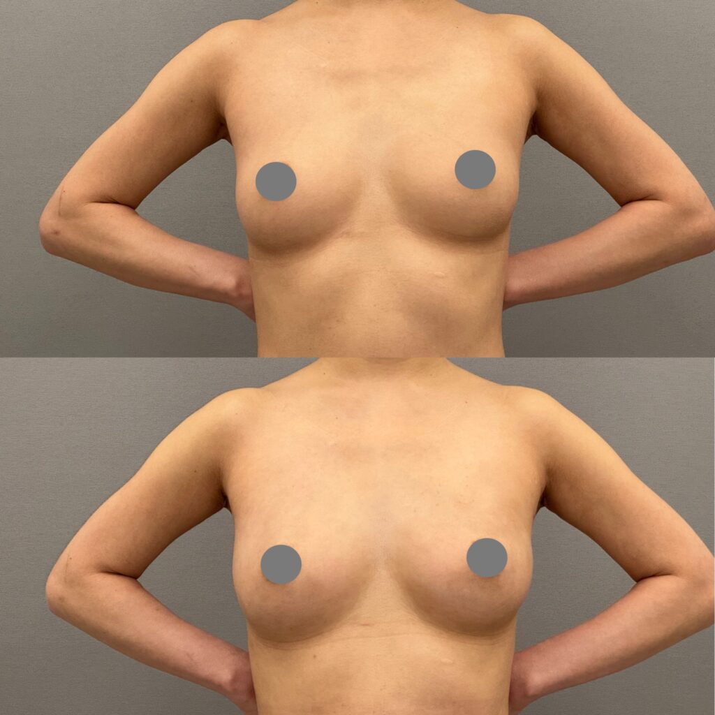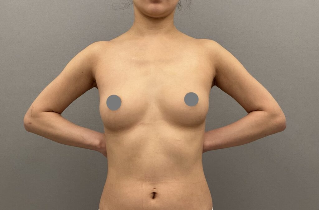 30代女性。授乳経験なし。お腹周りをスッキリさせたい、豊胸もしたいとのことでした。気になっているお腹周り(全腹部と腰)から脂肪採取を行い、脂肪豊胸を行いました。バストアップと同時に上半身がスッキリしてメリハリのあるボディに変化しました。腹部に色素沈着が見えますが、時間と共に改善していきます。仕上がりが楽しみですね。料金:脂肪豊胸(採取4部位)1,320,000円(税込) 別途静脈麻酔代や血液検査代や固定着代がかかります。副作用・リスク:出血、感染、色素沈着、傷跡、脂肪壊死、oil cystが生じる、脂肪の定着には個人差がある、希望とするサイズにならない可能性があるなど。