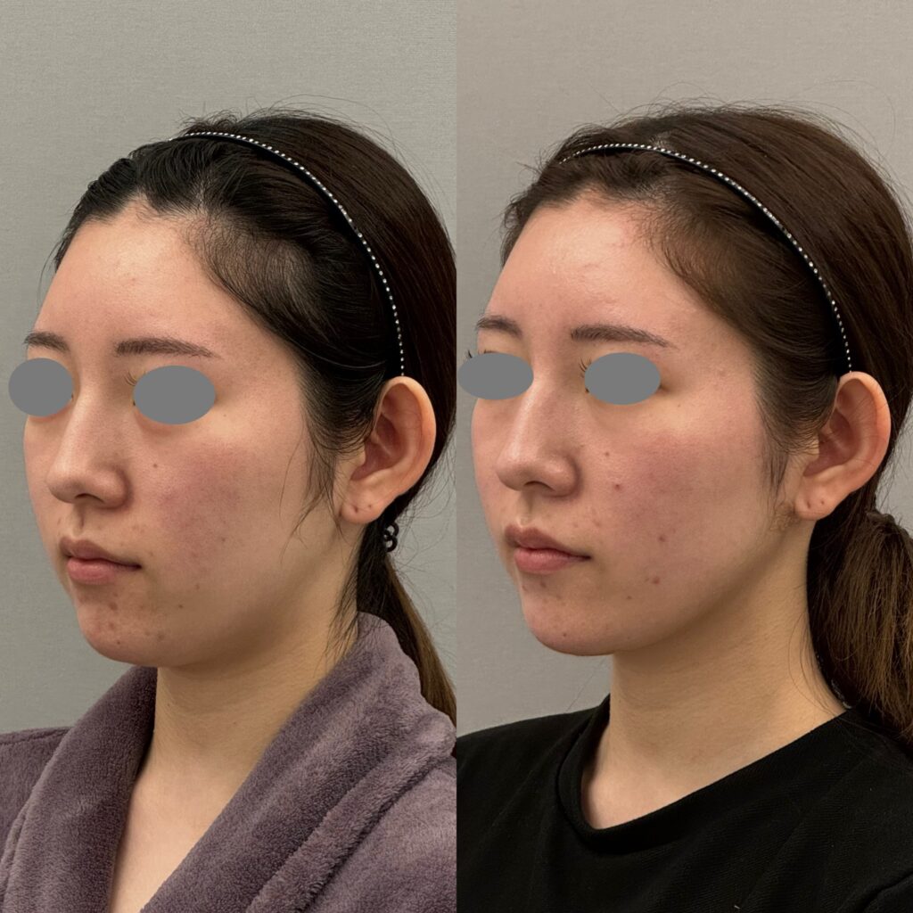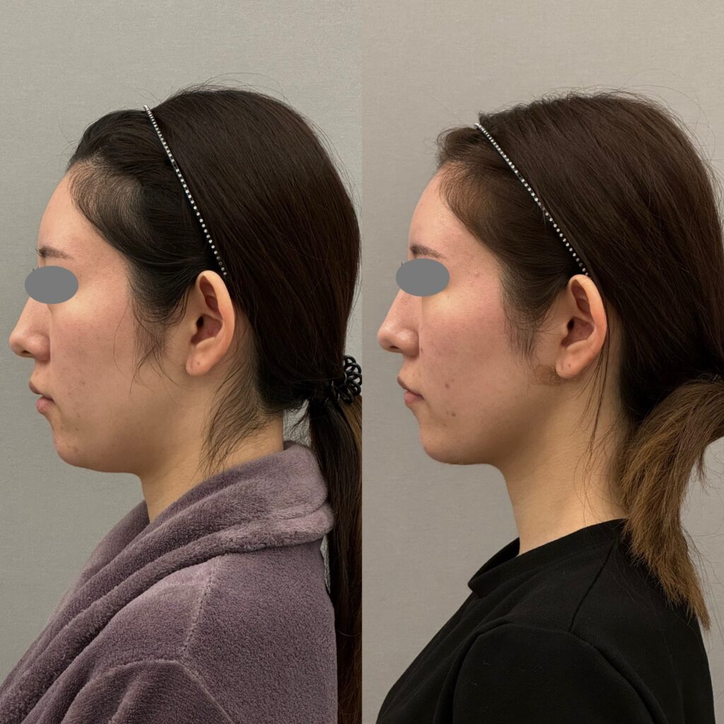 顎下の脂肪、弛みが気になるとのことで顎下のVASER脂肪吸引を行いました。頬は脂肪が少なく綺麗な輪郭でしたので今回頬は吸引しませんでした。よりシュッとさせたい場合は糸リフトやニューダブロもおすすめです。ボトックスリフトも併用するとより良いと思います。斜めや横から見たフェイスラインがすっきりしてシュッとしましたね。