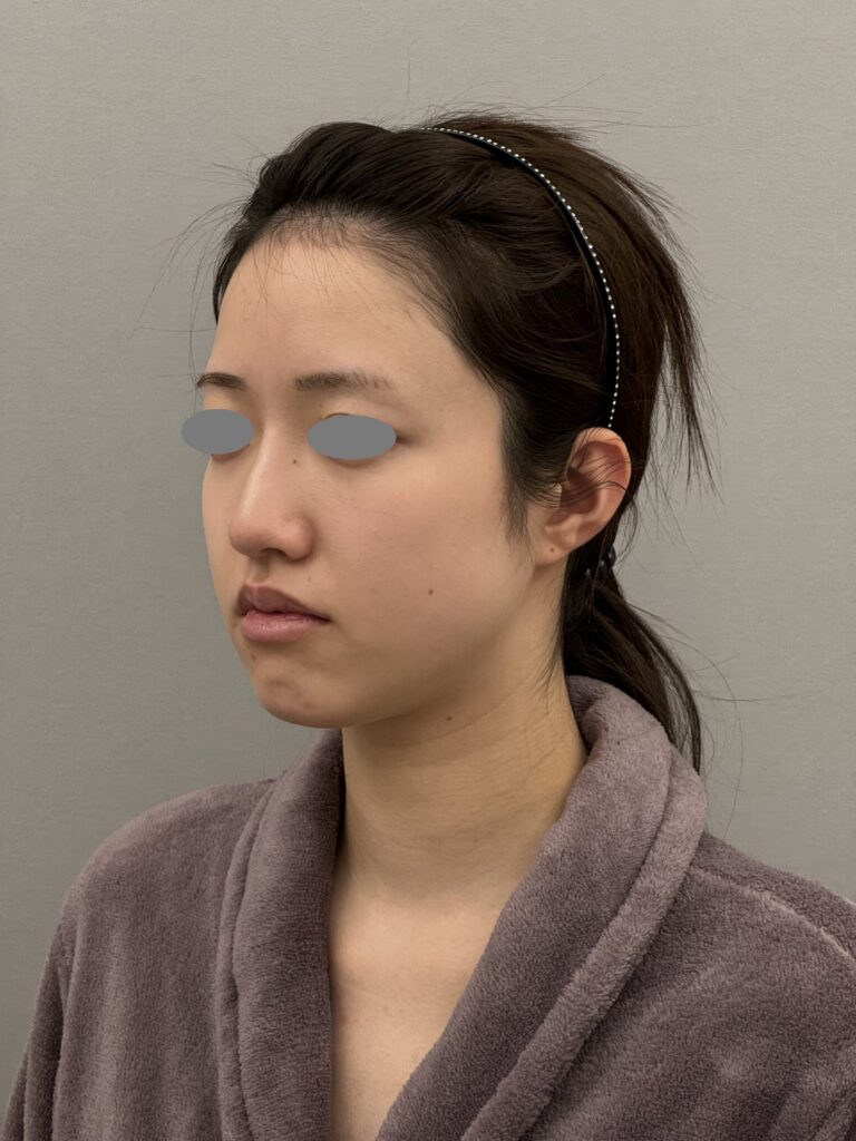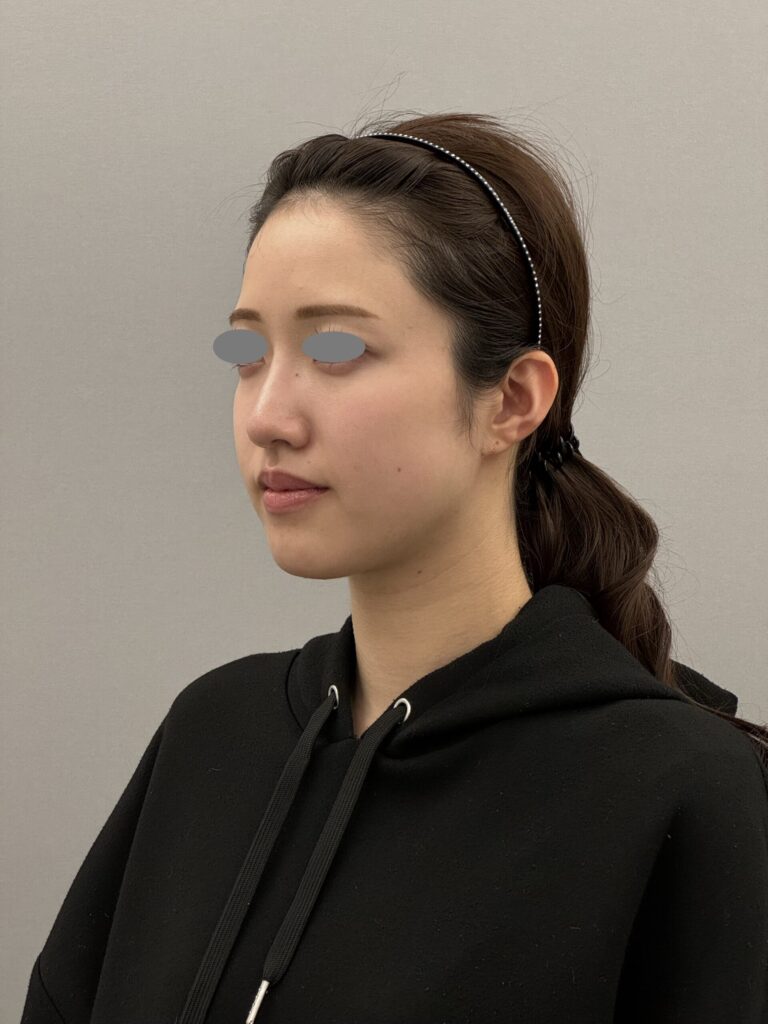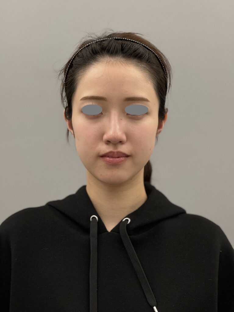 エラがなくなり正面もスッキリとした印象になっています。少し頬のコケがで始めたので2回目以降のエラボトックスは一旦見送った方が良いパターンです。また張ってきてボリュームがついた時に行うのが良いでしょう。このまま続けているとよりコケが目立つので経過を見て追加する時期は決めていきます。